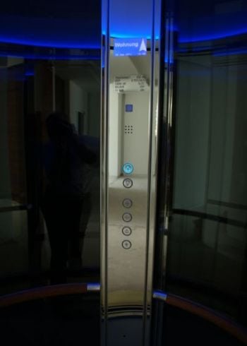 Aufgrund dieses Konzepts konnte außerdem vermieden werden, dass die im Untergeschoß liegenden Räume wegen einer reduzierten Schachtgrube von nur 400 mm baulich verändert werden mussten. Dank unserer radialen Schacht- und Kabinentüren gelang es uns erneut, einen kundenspezifischen, einzigartigen Aufzug zu konzipieren und zu installieren.