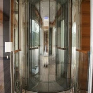 Für eine in traumhafter Lage an der Côte d’Azur gelegene Privatvilla baute GBH Design einen runden, vollverglasten Hydraulikaufzug über fünf Haltestellen mit nicht sichtbarem Doppelkolben.