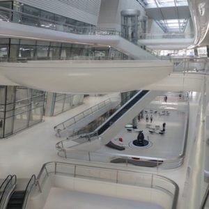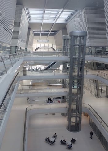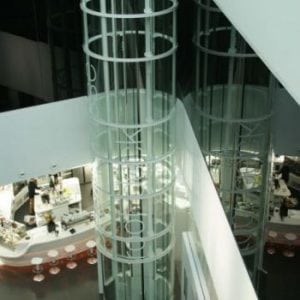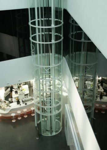 GBH Design hatte die Aufgabe, hierfür einen runden Glasaufzug zu entwerfen, der auf elegante Weise Zugang zu den auf drei Etagen verteilten Ausstellungsobjekten ermöglicht. Die in geschliffenem Edelstahl veredelten Oberflächen fügen sich harmonisch in das klare, helle Design des Museums ein. Auch hier wurden die von GBH Design entwickelten runden Schacht- und Kabinenglastüren in das Gesamtkonzept eingebracht.