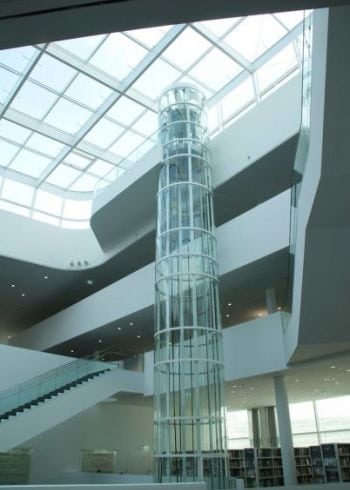 Für das neue Bürogebäude Hankook Tire Central R&D Center des südkoreanischen Reifenherstellers Hankook konstruierte GBH Design vier runde Glasaufzüge mit Seilantrieb über vier (1) bzw. fünf (3) Haltestellen.