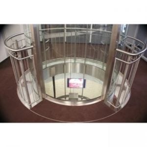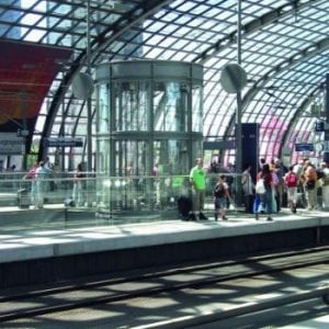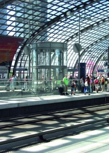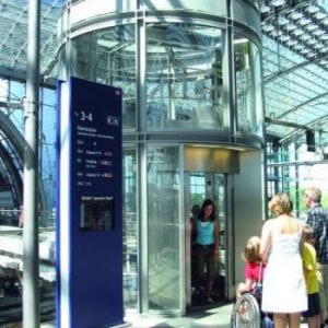 Die radialen Schacht- und Kabinentüren mit untenliegendem Antrieb wurden speziell für dieses Projekt vandalismussicher entwickelt und gefertigt und sind mit dem DB-Zertifikat ausgezeichnet.